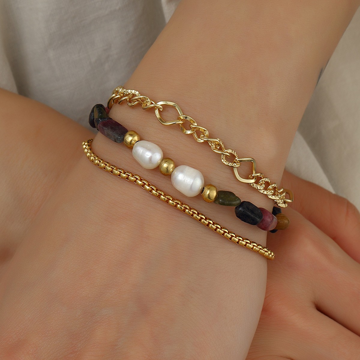 Bracelet - Laiton plaqué or, tourmaline & perle