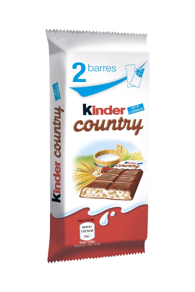 Une barre enrobée de bon chocolat au lait, avec 5 céréales (orge, riz, froment, épeautre, sarrasin), Kinder Country apporte la juste dose d'énergie dont les jeunes enfants ont besoin, sans couper l'appétit. La barre idéale pour recharger les batteries des enfants et des grands !