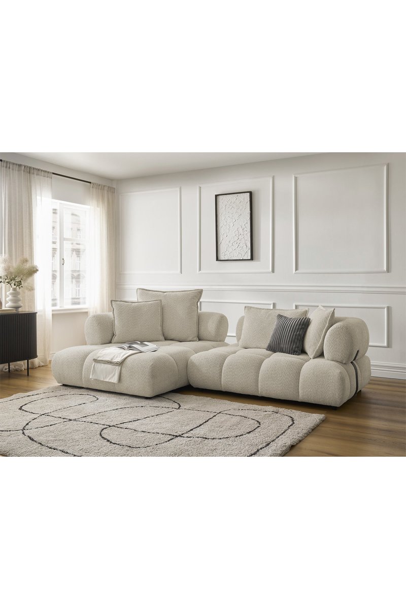 Canapé d’angle gauche Alya - Beige - 4 places - En tissu bouclette