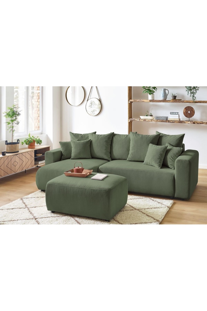 Canapé d'angle réversible convertible et pouf Envy - Kaki - Couchage 231 x 130 cm