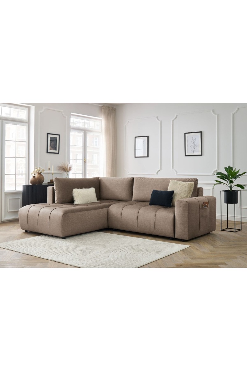 Canapé d'angle gauche convertible Arsene - Taupe - Couchage 135 x 204 cm