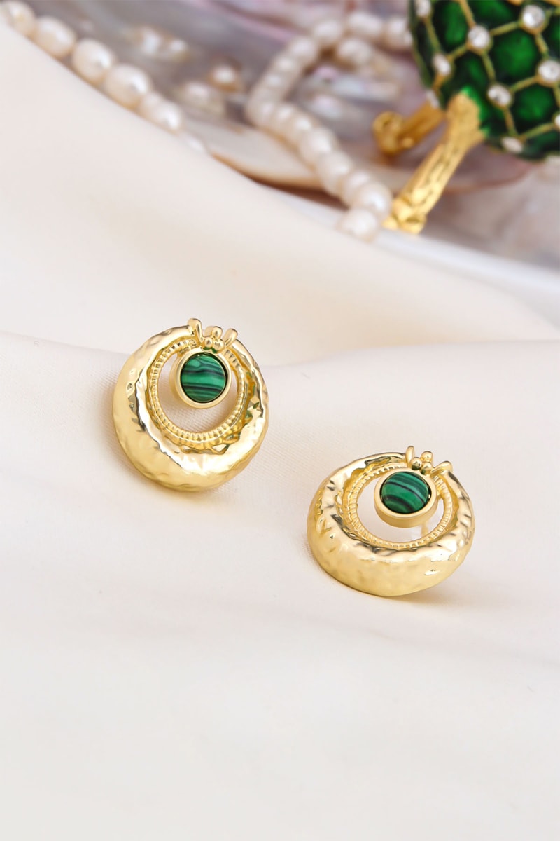 Boucles d'oreilles serties d’une malachite.