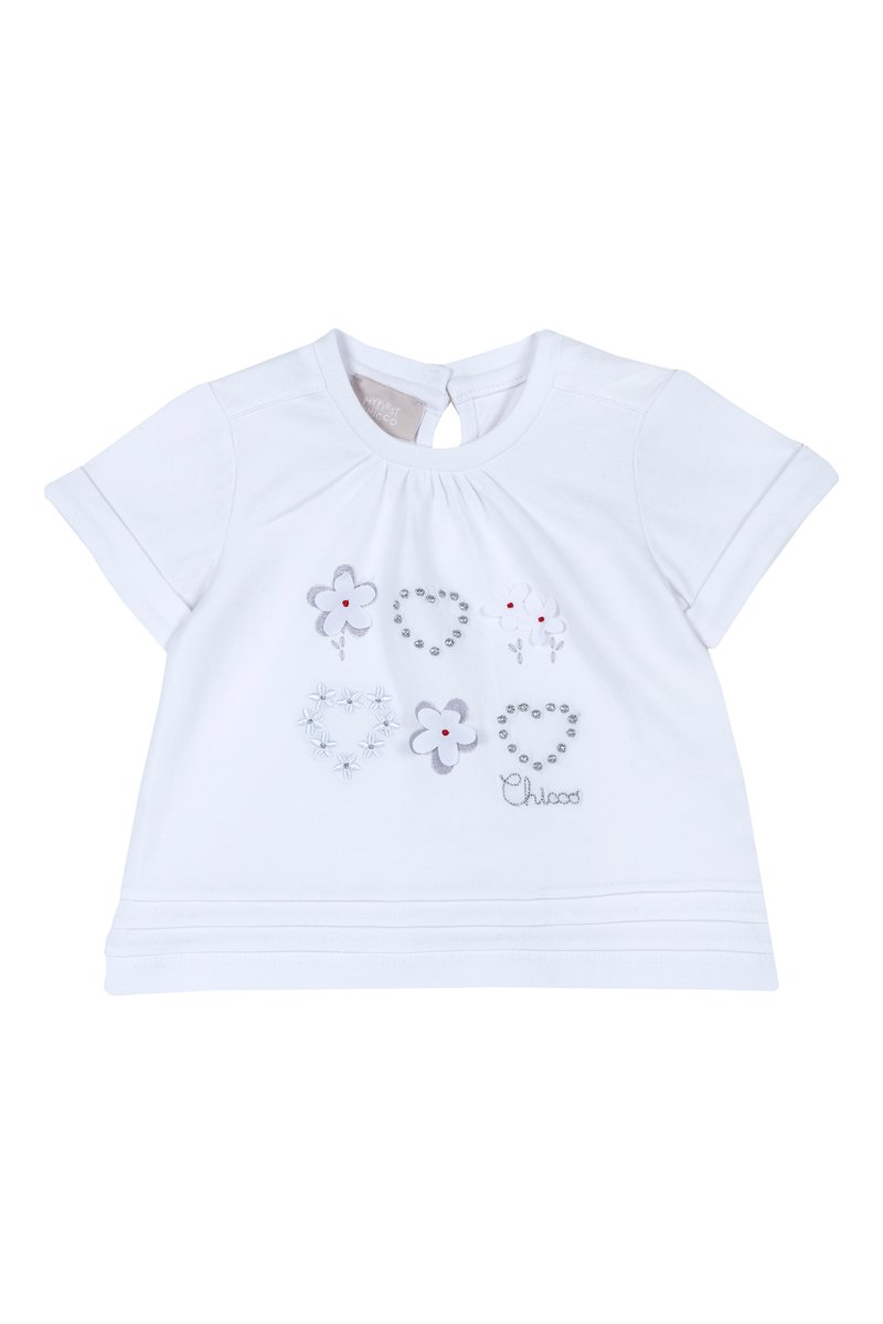 Empiècements forme fleur, strass, logo, motifs cœurs et fleurs devant.