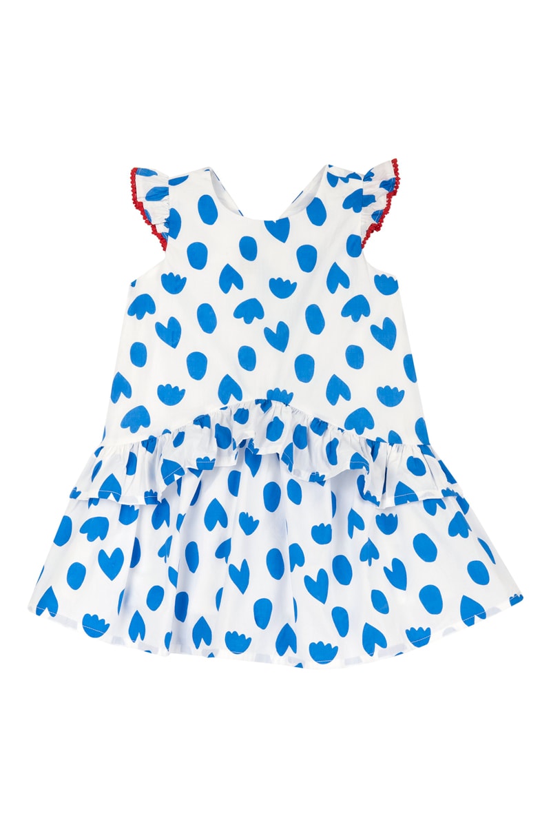 Robe volantée - Blanc et indigo