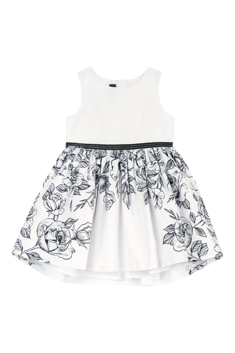 Motifs fleurs sur la jupe.