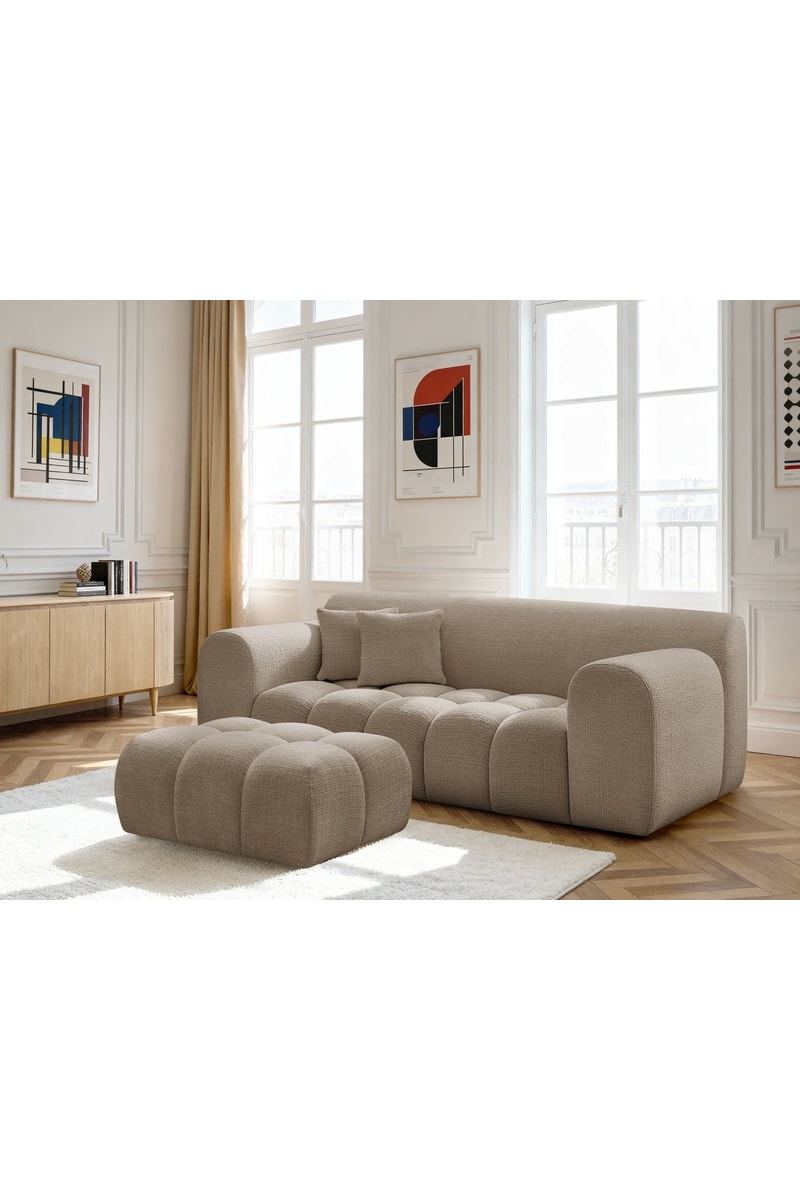Canapé et pouf Mélisse - 2 places - Taupe - En polyester