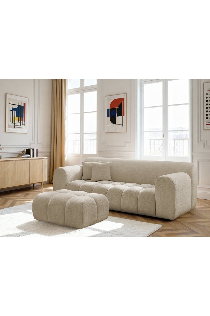 Canapé et pouf Mélisse - 3 places - Beige - En polyester