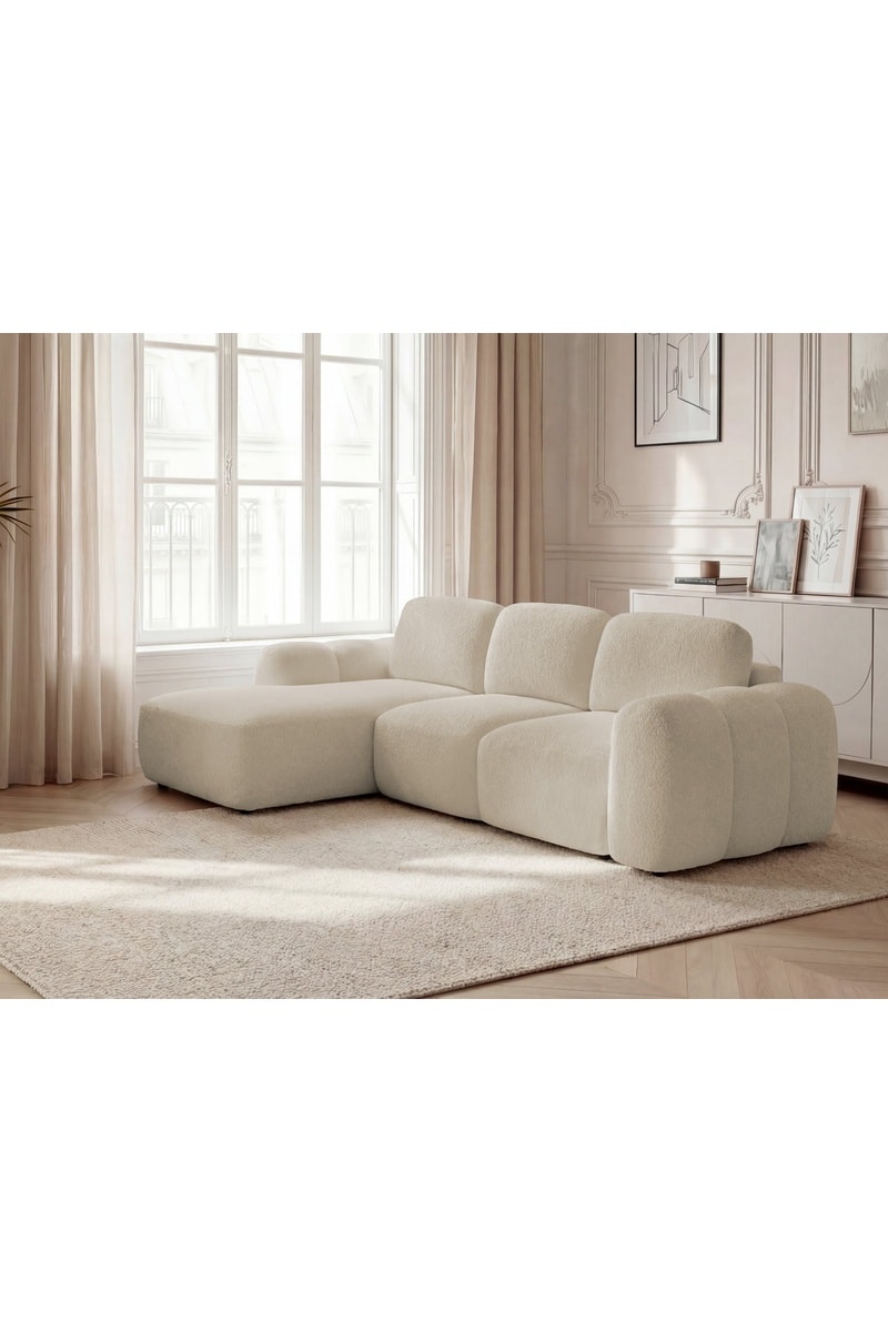 Canapé d'angle gauche convertible Montaigne - Beige - 4 places - En tissu bouclette