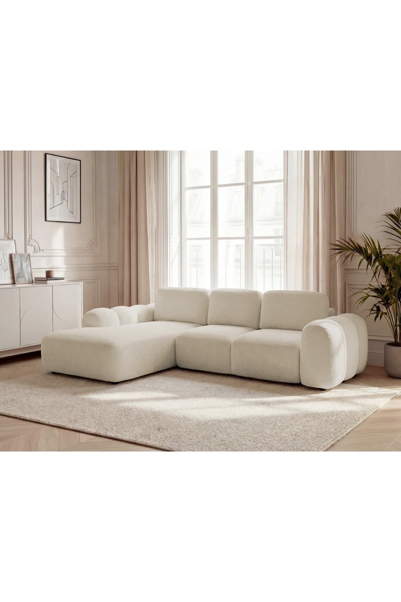 Canapé d'angle gauche convertible Montaigne - Beige - 3 places - En tissu bouclette