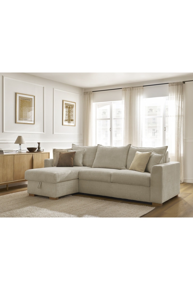 Canapé d'angle réversible convertible Augustin - Beige - 3 places - En tissu texturé
