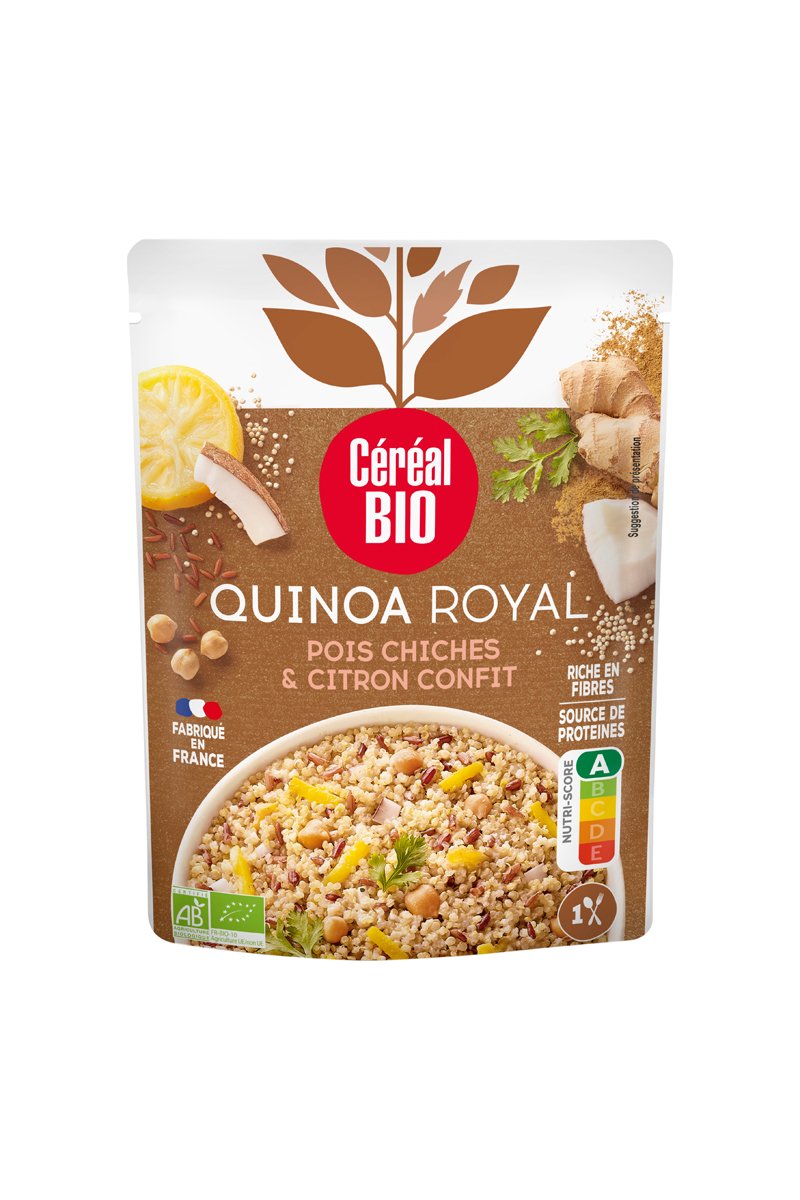 Doypack de quinoa Royal pois-chiches et citron confit au lait de coco.