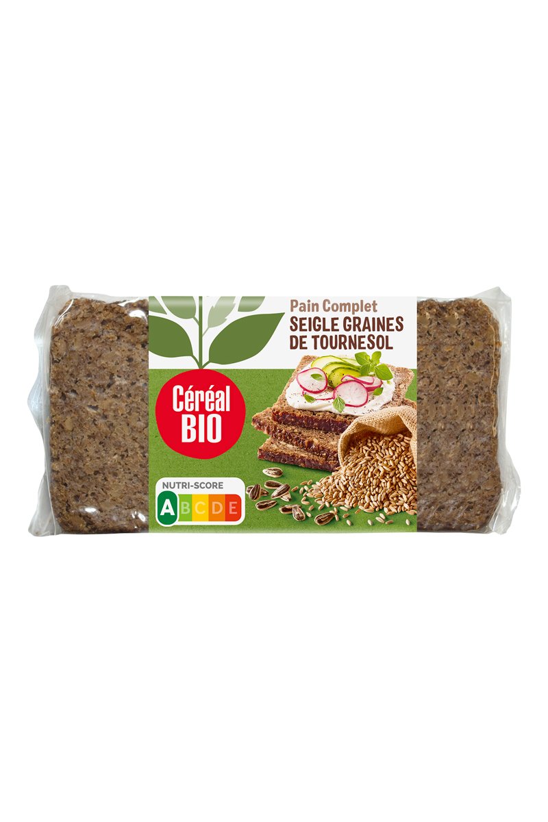 Ingrédients : farine complète de seigle* 55%, eau, graines de tournesol* 5%, sel de mer, levure de boulanger.