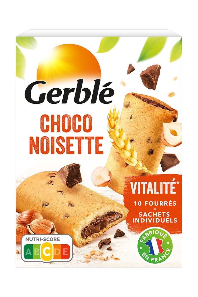 Ingrédients : Farine de blé, sucre, huiles végétales de colza et de tournesol, cacao maigre en poudre 4,3%, germe de blé3,3%, œuf, noisettes1,9%, paillettes de chocolat 1,4% (sucre, pâte de cacao, cacao maigre en poudre, matière grasse de lait, émulsifiant : lécithines de soja, arôme naturel de vanille), amidon de blé, beurre de cacao, magnésium, émulsifiants : lécithines de soja et de colza, fructose, poudres à lever (tartrates de potassium, carbonates d'ammonium), levure désactivée, sel de mer, arôme naturel, vitamine B6.