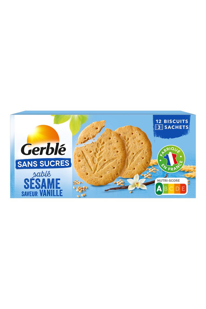 Paquet de biscuits au sésame saveur vanille.