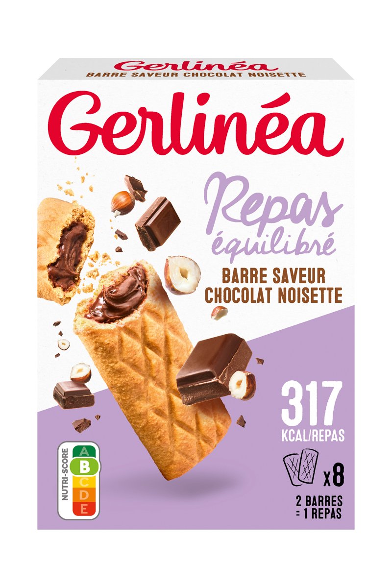 Barres repas fourrées chocolat saveur noisette.