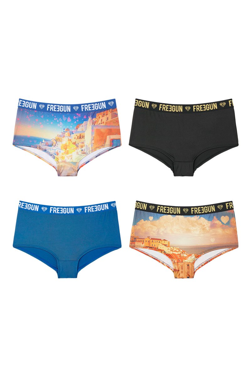 Depuis sa création en 2007, Freegun a rapidement envahi les rues et les circuits, habillant les adeptes de streetwear et de sports extrêmes. La marque jeune et tendance propose des collections de sous-vêtements, des t-shirts et des accessoires pour adulte et enfant au design flashy et aux imprimés fantaisie.