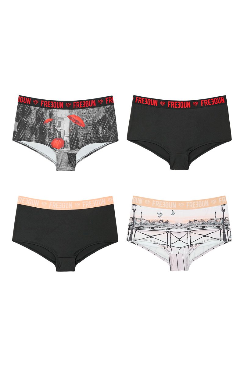Depuis sa création en 2007, Freegun a rapidement envahi les rues et les circuits, habillant les adeptes de streetwear et de sports extrêmes. La marque jeune et tendance propose des collections de sous-vêtements, des t-shirts et des accessoires pour adulte et enfant au design flashy et aux imprimés fantaisie.