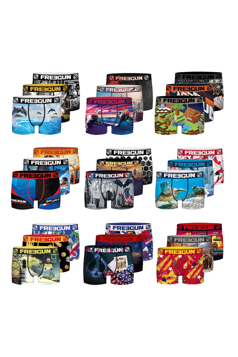 Depuis sa création en 2007, Freegun a rapidement envahi les rues et les circuits, habillant les adeptes de streetwear et de sports extrêmes. La marque jeune et tendance propose des collections de sous-vêtements, des t-shirts et des accessoires pour adulte et enfant au design flashy et aux imprimés fantaisie.