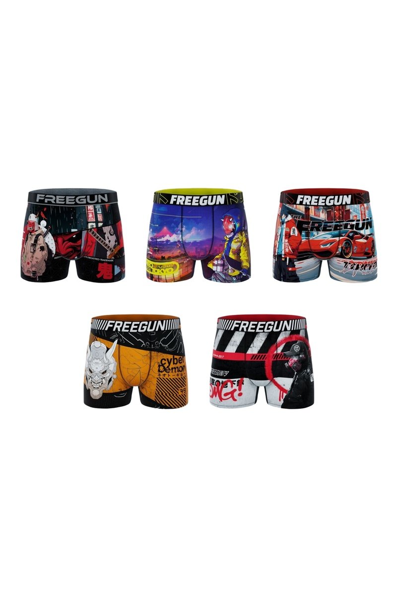 Depuis sa création en 2007, Freegun a rapidement envahi les rues et les circuits, habillant les adeptes de streetwear et de sports extrêmes. La marque jeune et tendance propose des collections de sous-vêtements, des t-shirts et des accessoires pour adulte et enfant au design flashy et aux imprimés fantaisie.