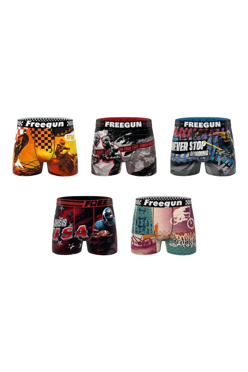 Depuis sa création en 2007, Freegun a rapidement envahi les rues et les circuits, habillant les adeptes de streetwear et de sports extrêmes. La marque jeune et tendance propose des collections de sous-vêtements, des t-shirts et des accessoires pour adulte et enfant au design flashy et aux imprimés fantaisie.