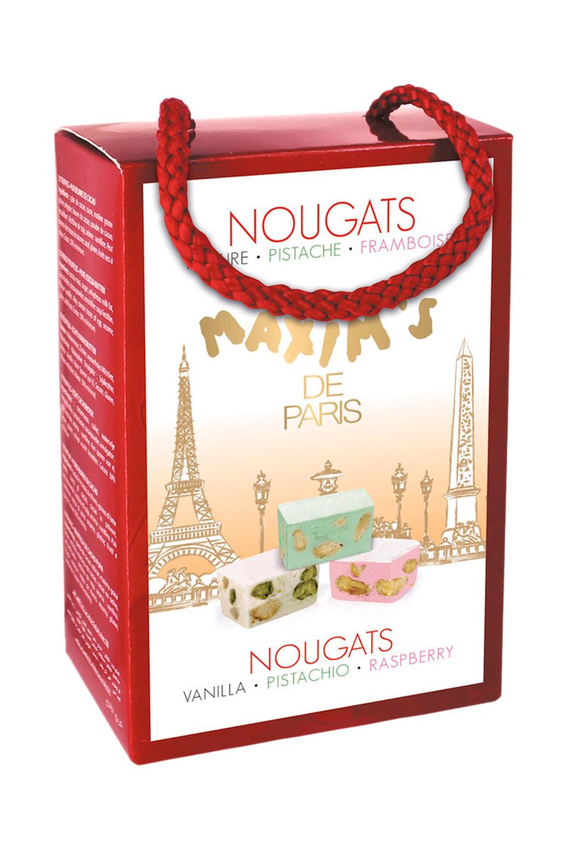 Retrouvez le goût authentique des confiseries emblématiques de la tradition française avec cet assortiment de tendres nougats nature, pistache et framboise présenté dans un élégant petit ballotin, agrémenté de sa cordelette rouge.