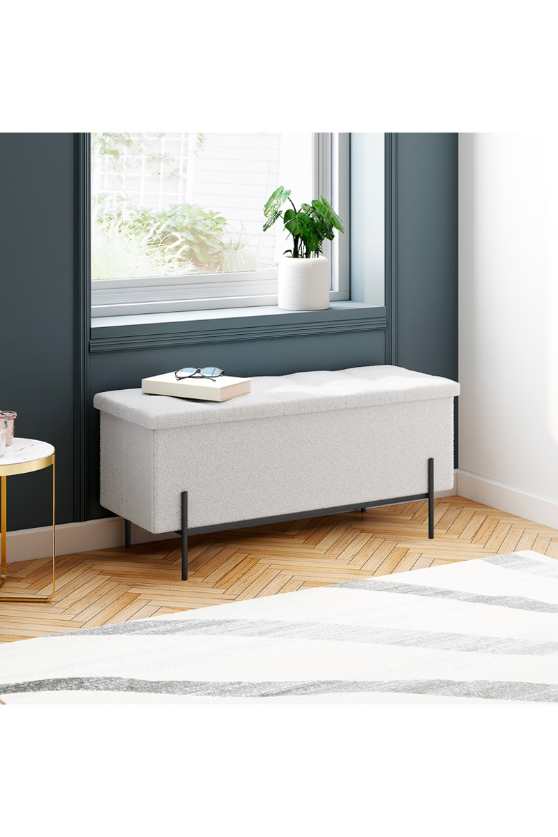 Banc-coffre Loan - Tissu bouclette - 100 x 45 x 37 cm