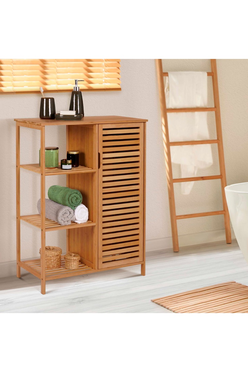 Meuble salle de bain 1 porte Maya - Structure en bambou - 66 x 33 x 87 cm
