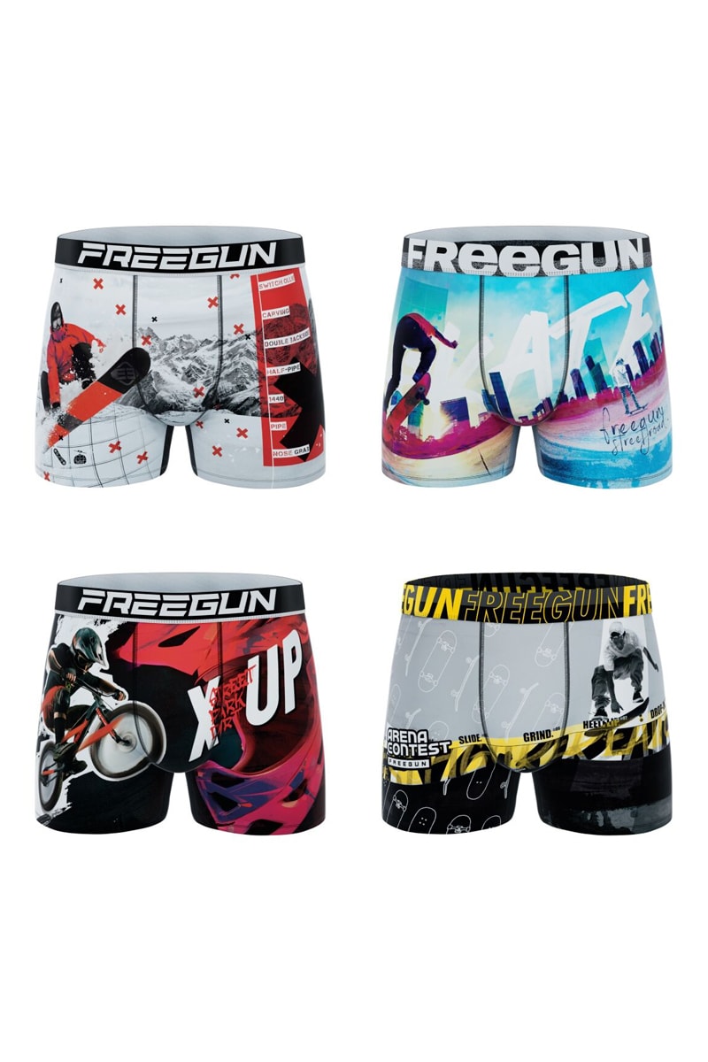 Depuis sa création en 2007, Freegun a rapidement envahi les rues et les circuits, habillant les adeptes de streetwear et de sports extrêmes. La marque jeune et tendance propose des collections de sous-vêtements, des t-shirts et des accessoires pour adulte et enfant au design flashy et aux imprimés fantaisie.