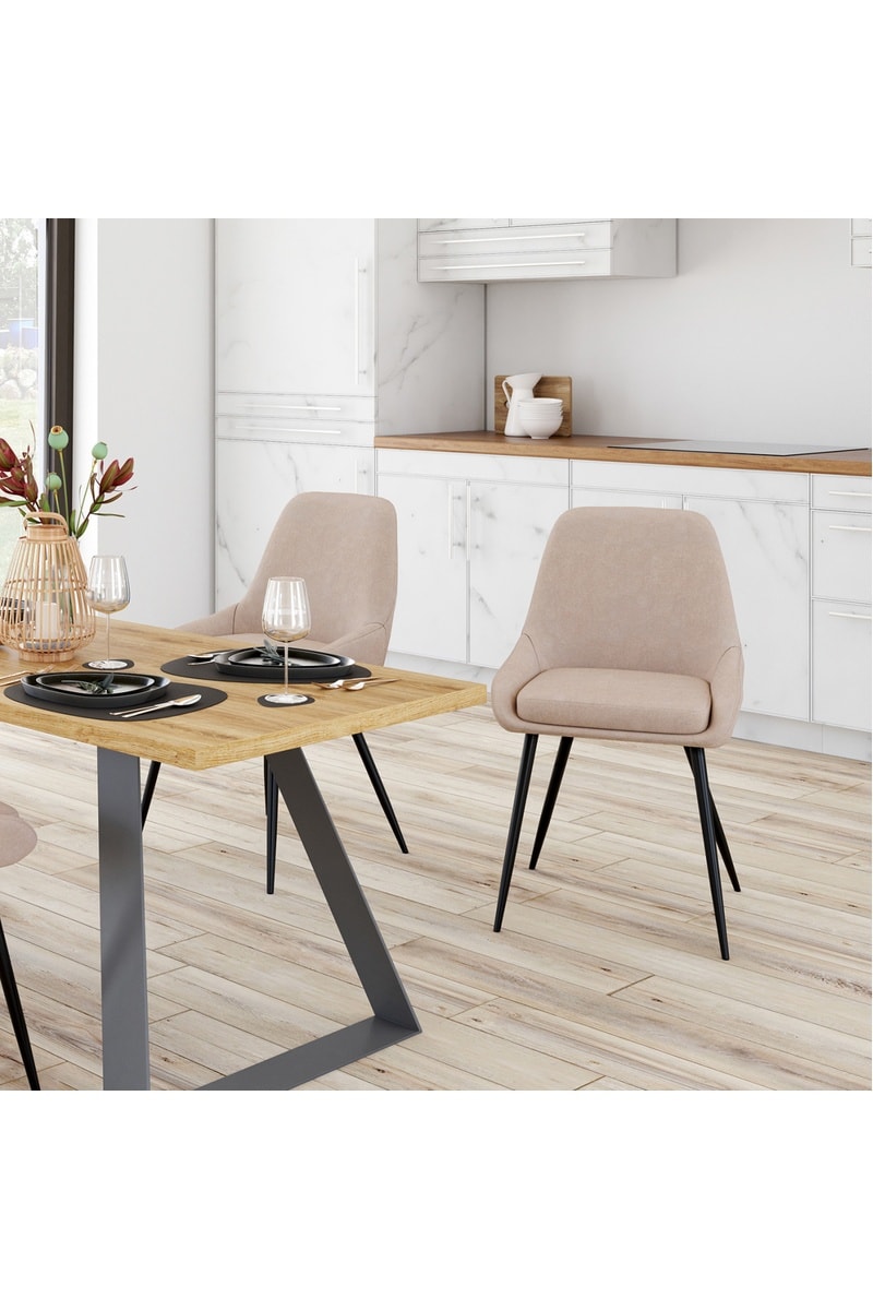 Chaises Ornella en tissu taupe et pieds métal noirs - lot de 2