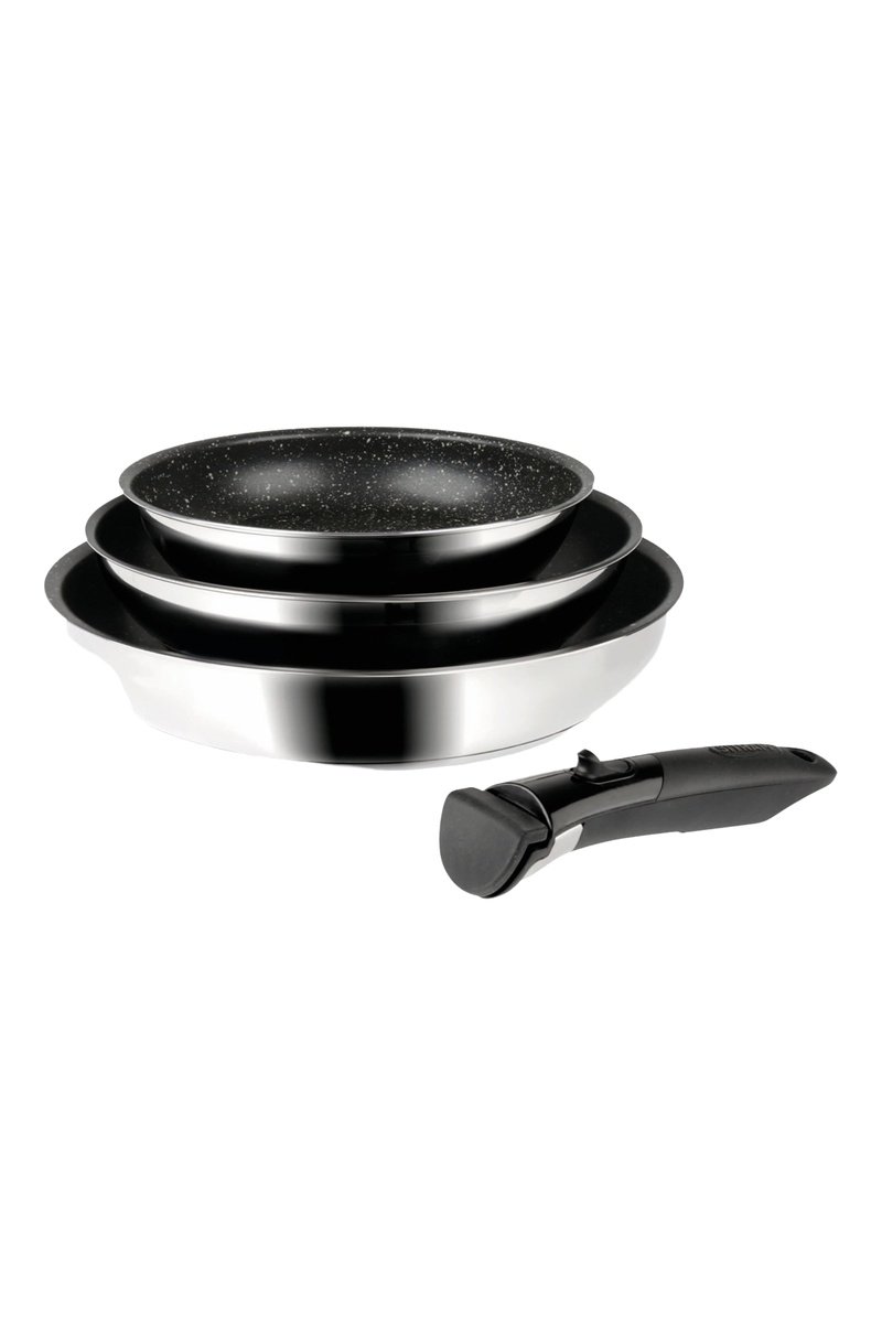 3 poêles en acier inoxydable et 1 manche amovible Sitramovible Arpege - 20/24/28 cm