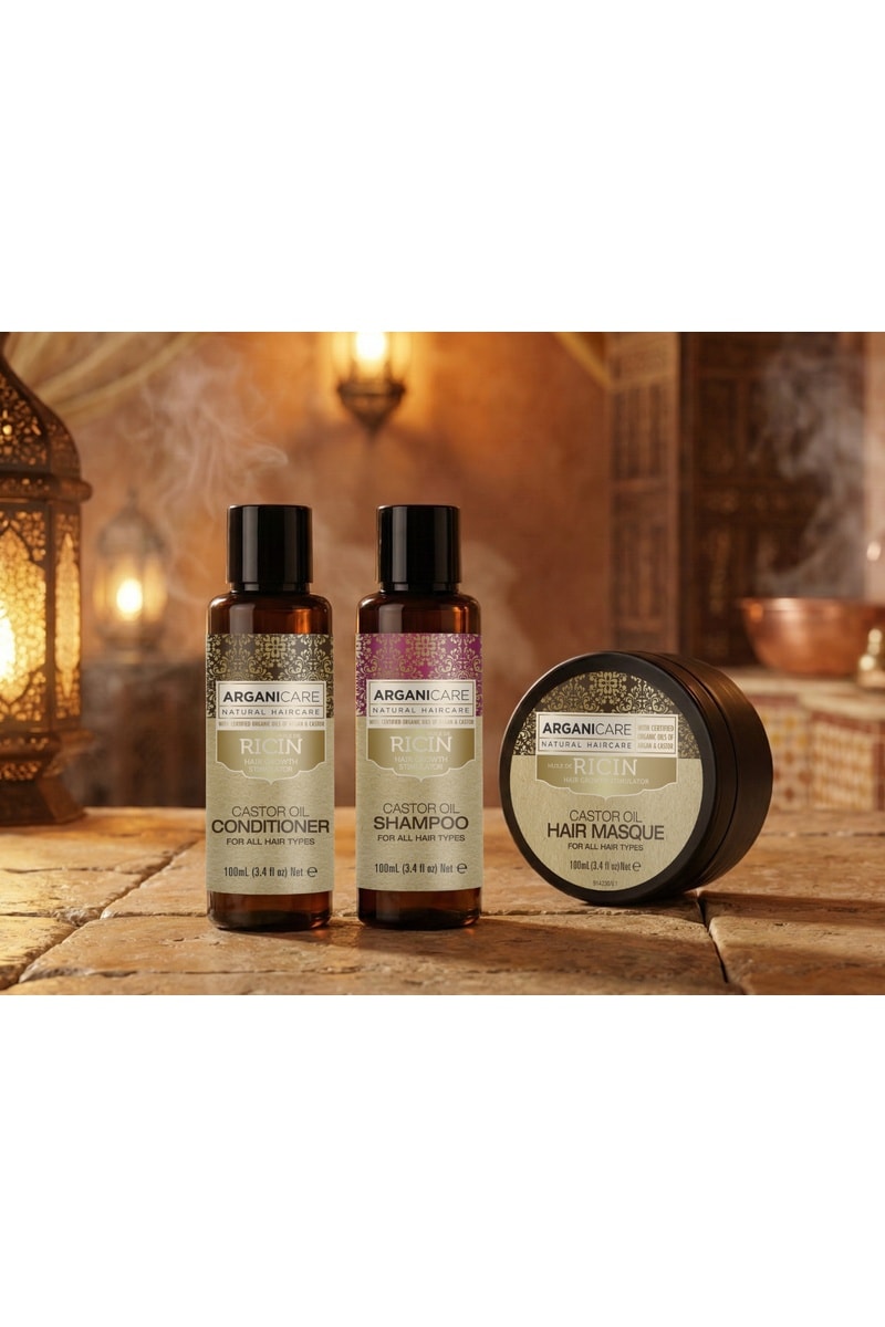 Enrichis en huile de ricin bio et huile d’argan, ces soins agissent en synergie pour des cheveux visiblement plus forts, sains et brillants, où que vous soyez.