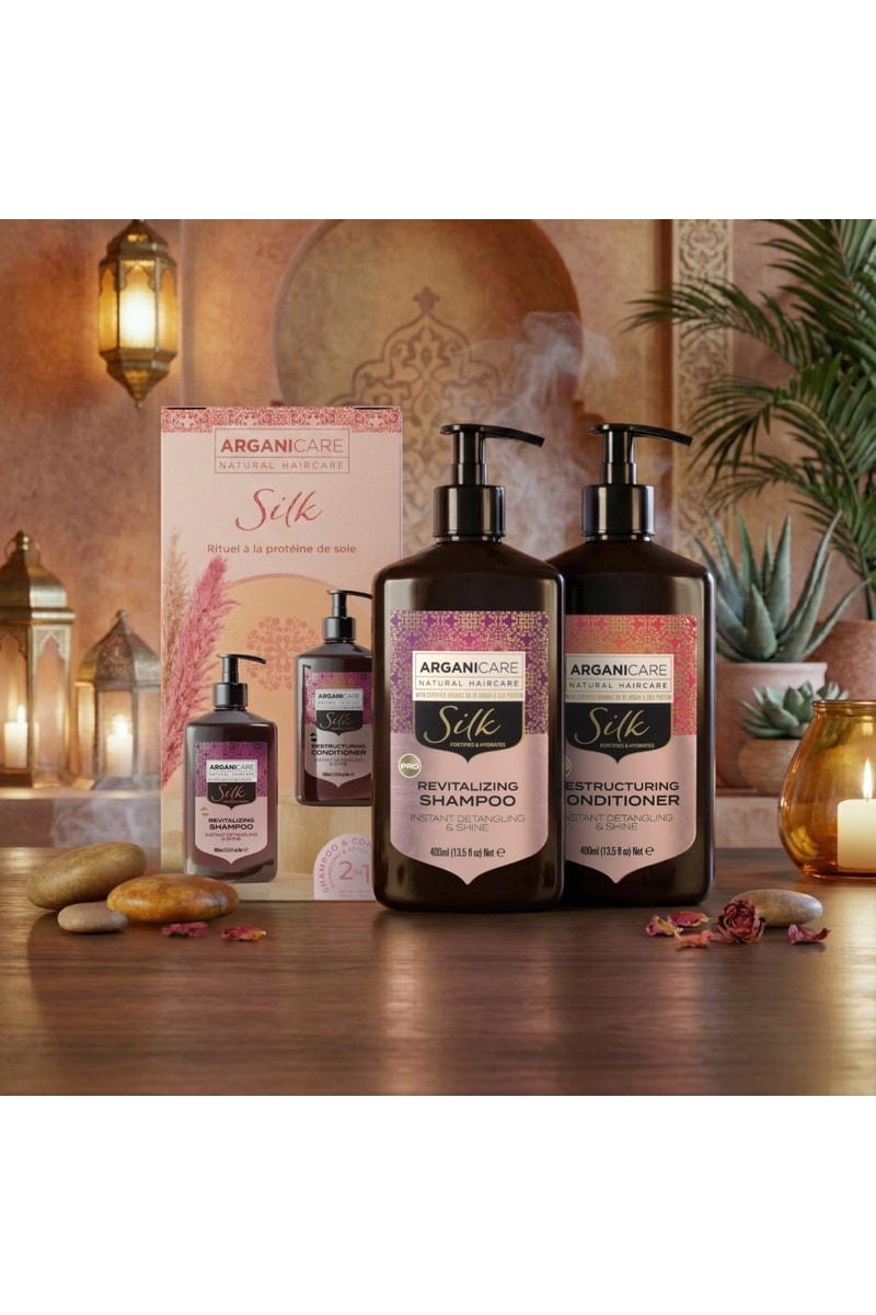 Optez pour ce shampoing et après-shampoing enrichis avec de précieuses huiles organiques qui réparent et traitent les cheveux les plus secs et ternes. C’est un moyen parfait pour nettoyer délicatement les cheveux tout en maintenant leur taux d’hydratation en fournissant une nutrition optimale. Grâce à sa formule unique, riche en huile d’Argan et en protéine de Soie, vos cheveux sont parfaitement nourris et hydratés.