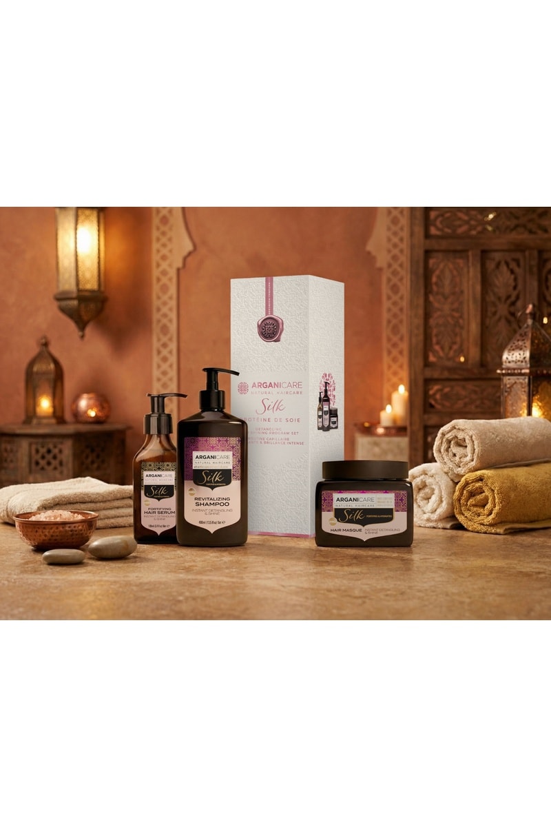 Optez pour ces soins enrichis avec de précieuses huiles organiques qui réparent et traitent les cheveux les plus secs et ternes. C’est un moyen parfait pour nettoyer délicatement les cheveux tout en maintenant leur taux d’hydratation en fournissant une nutrition optimale. Grâce à sa formule unique, riche en huile d’Argan et en protéine de Soie, vos cheveux sont parfaitement nourris et hydratés.