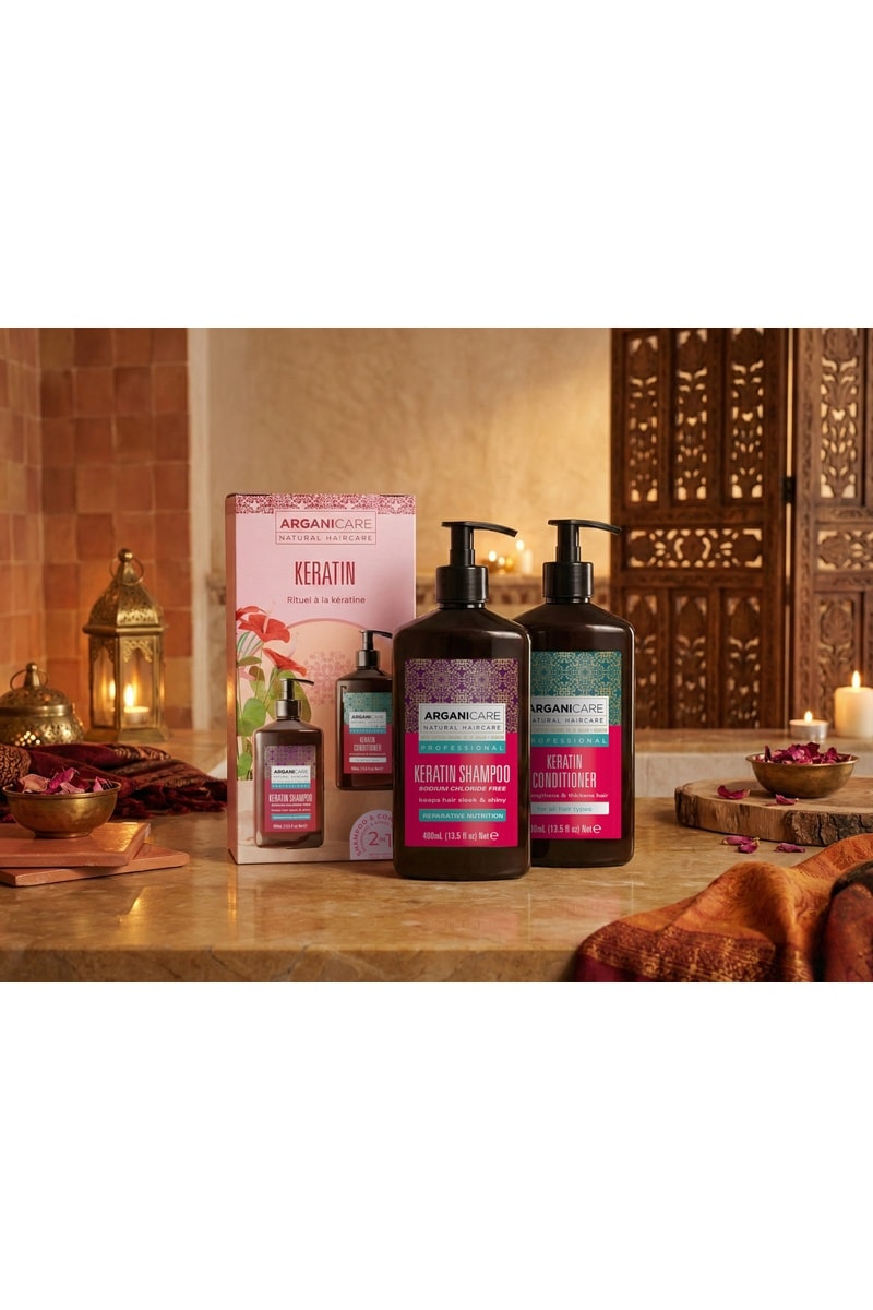 Coffret shampoing & après-shampoing réparateur & fortifiant - Kératine - 4 x 100 ml