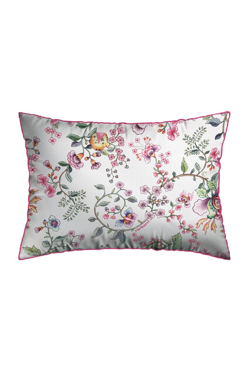 2 taies d'oreiller en satin de coton 200 fils/cm² Jardin Secret - Blanc et rose