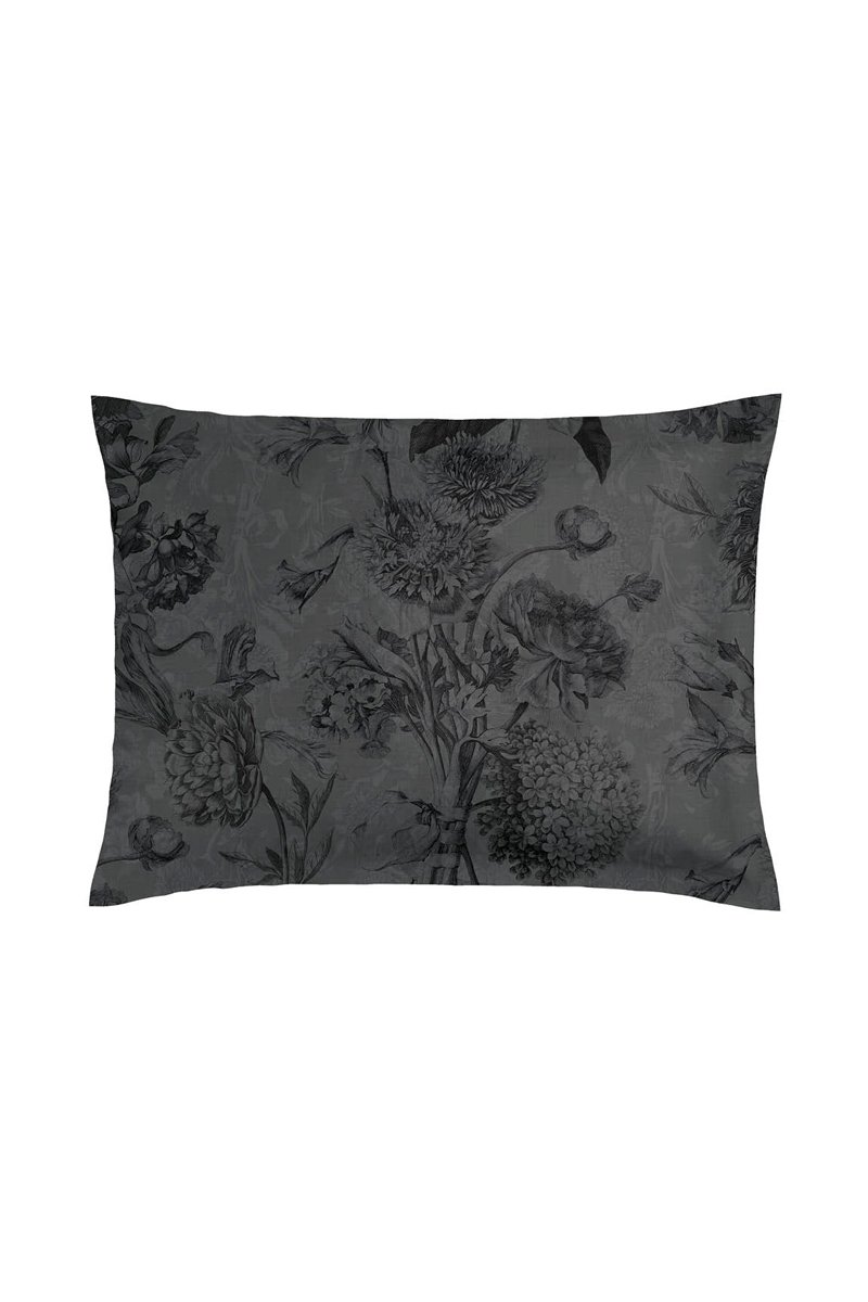 2 taies d'oreiller en satin de coton 200 fils/cm² Flore - Noir et anthracite