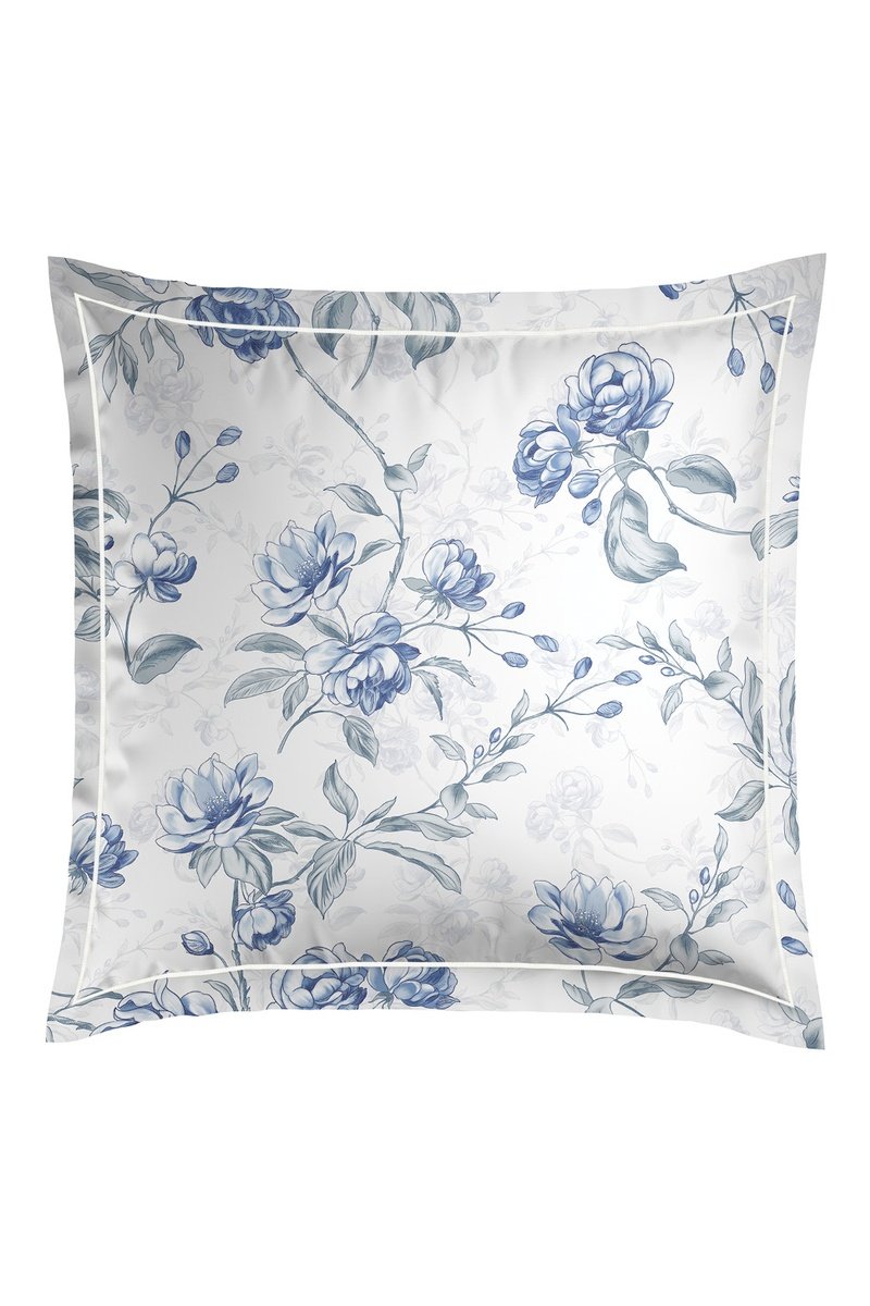 2 taies d'oreiller en satin de coton 80 fils/cm² Fleurs azurées - Blanc