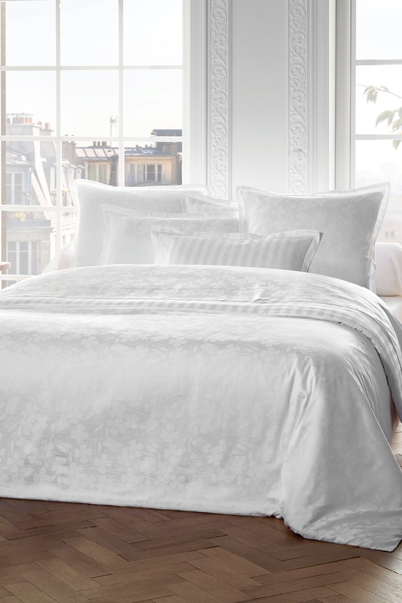 Parure de couette en satin de coton 120 fils/cm² Jacquard Petites Fleurs - Blanc