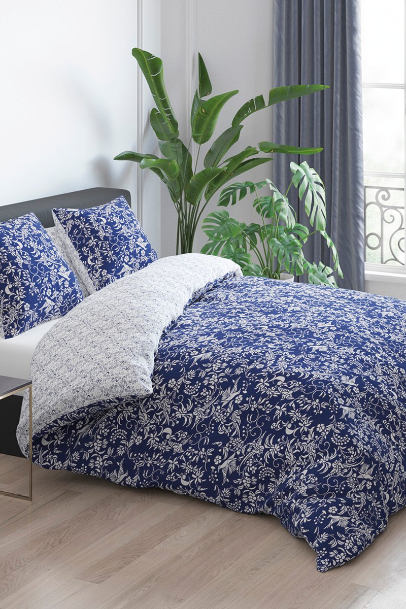 Parure de couette en satin de coton 80 fils/cm² Birds - Bleu
