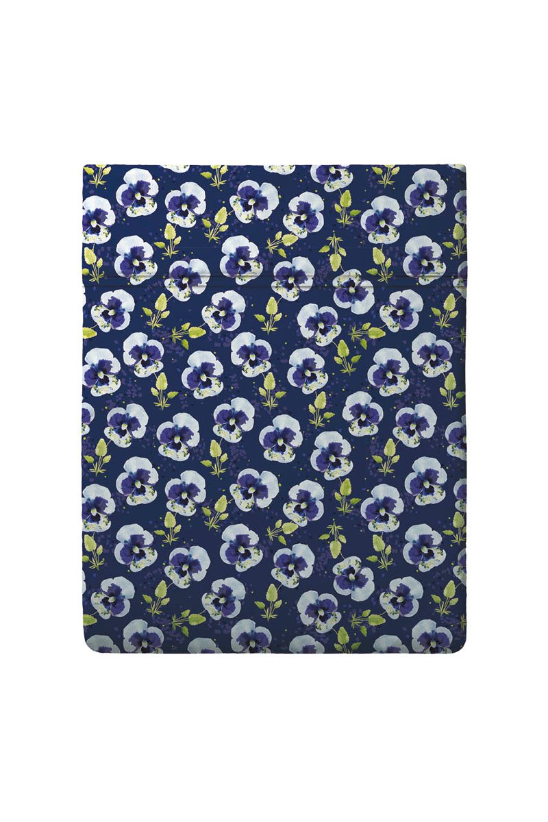 Drap plat en satin de coton 200 fils/cm² Pansy Small - Bleu foncé