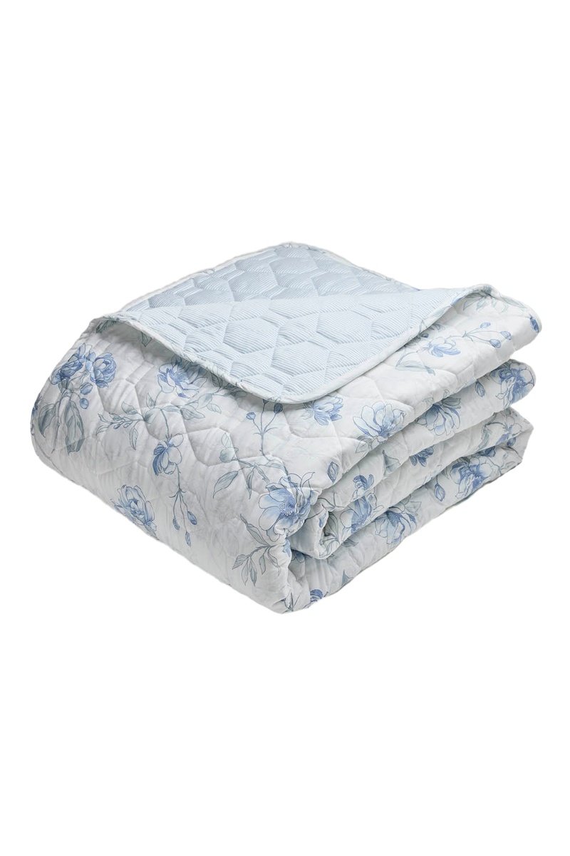 Drap plat en satin de coton 80 fils/cm² Fleurs azurées - Bleu