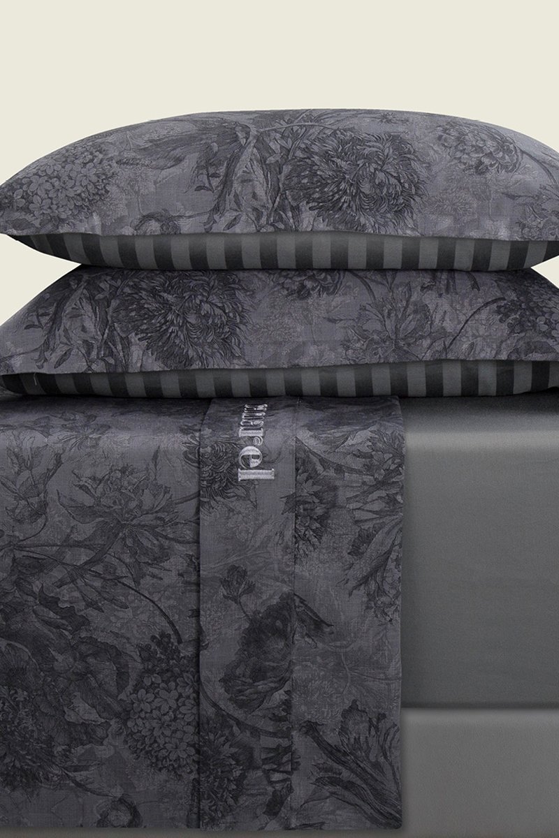 Parure de draps en satin de coton 80 fils/cm² Flore - Noir