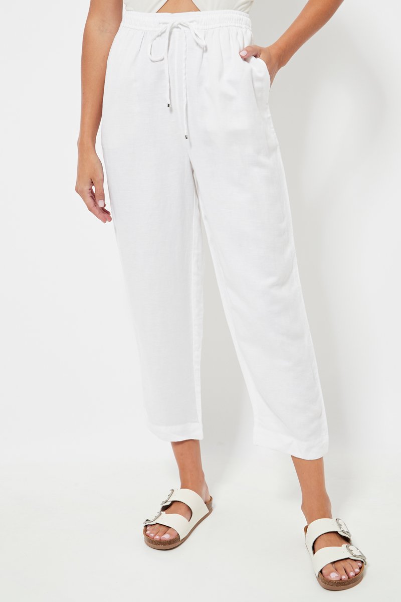 Pantalon relaxed en lin taille haute - Blanc