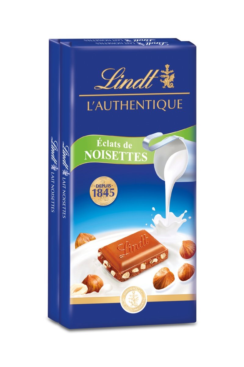 Tablette de chocolat L'authentique au lait noisettes Lindt - 2 x 100 g