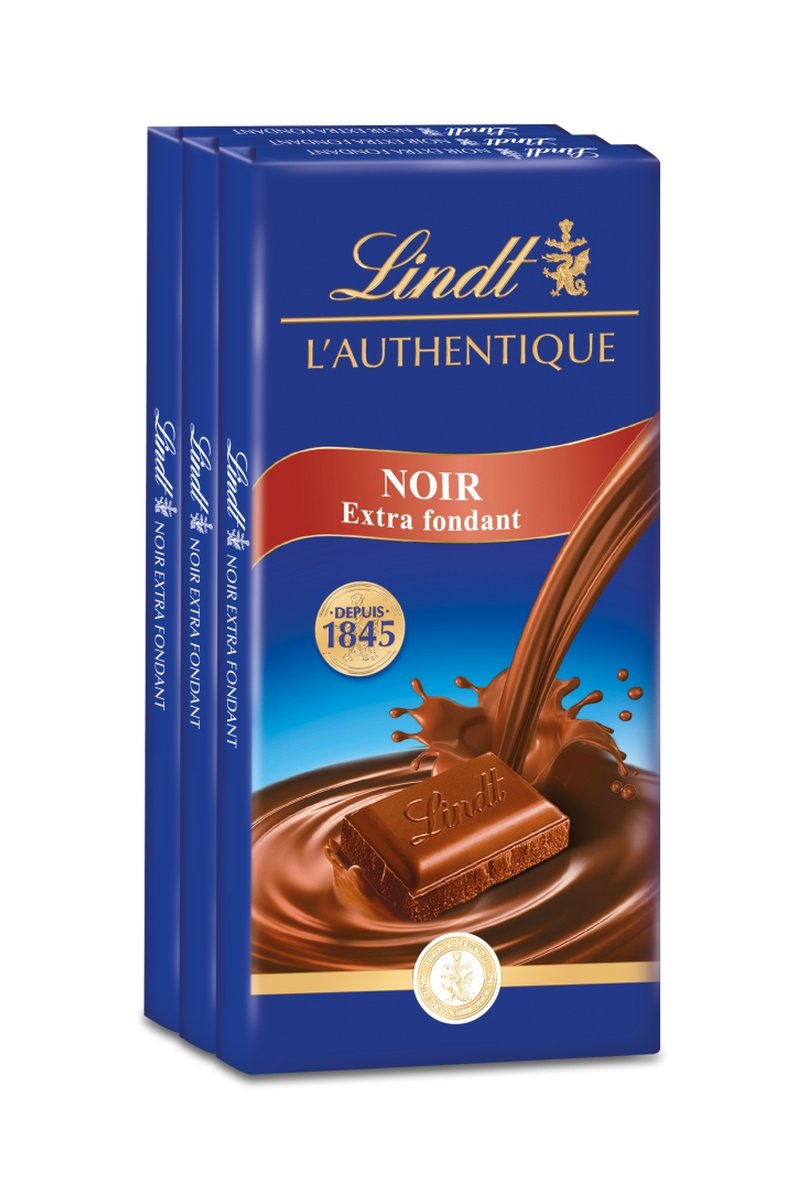 Tablette de chocolat L'authentique noir extra fondant Lindt - 3 x 100 g