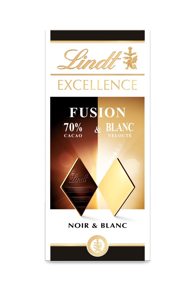 Tablette de chocolat noir et blanc Excellence Fusion Lindt.