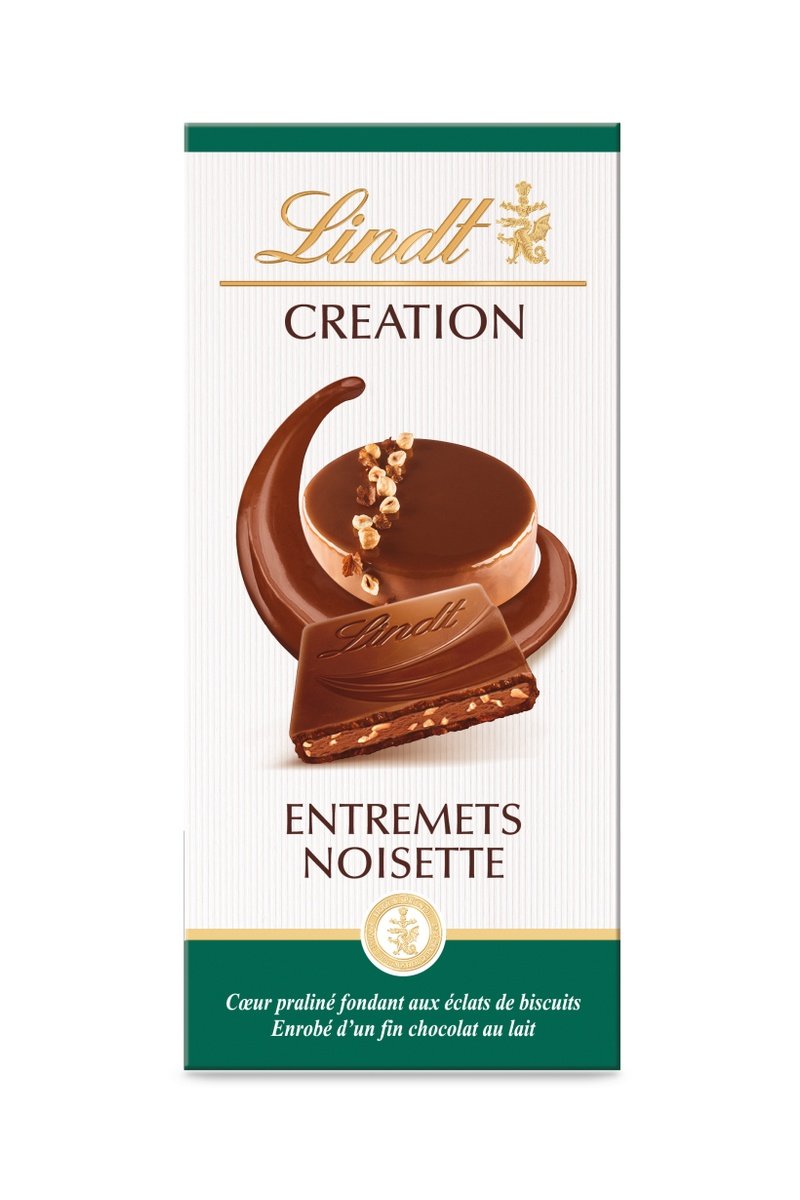 Tablette de chocolat lait entremets noisette Création Lindt.