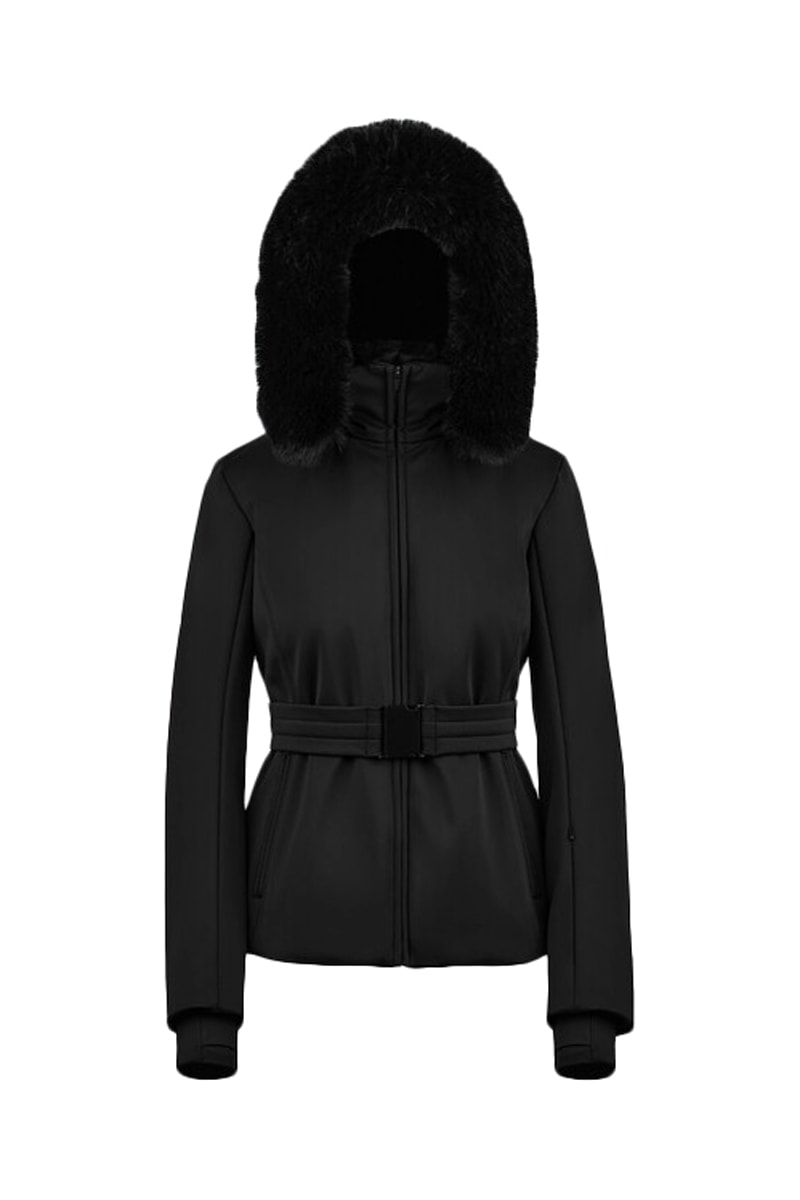 Veste à capuche en fausse fourrure à manches longues.