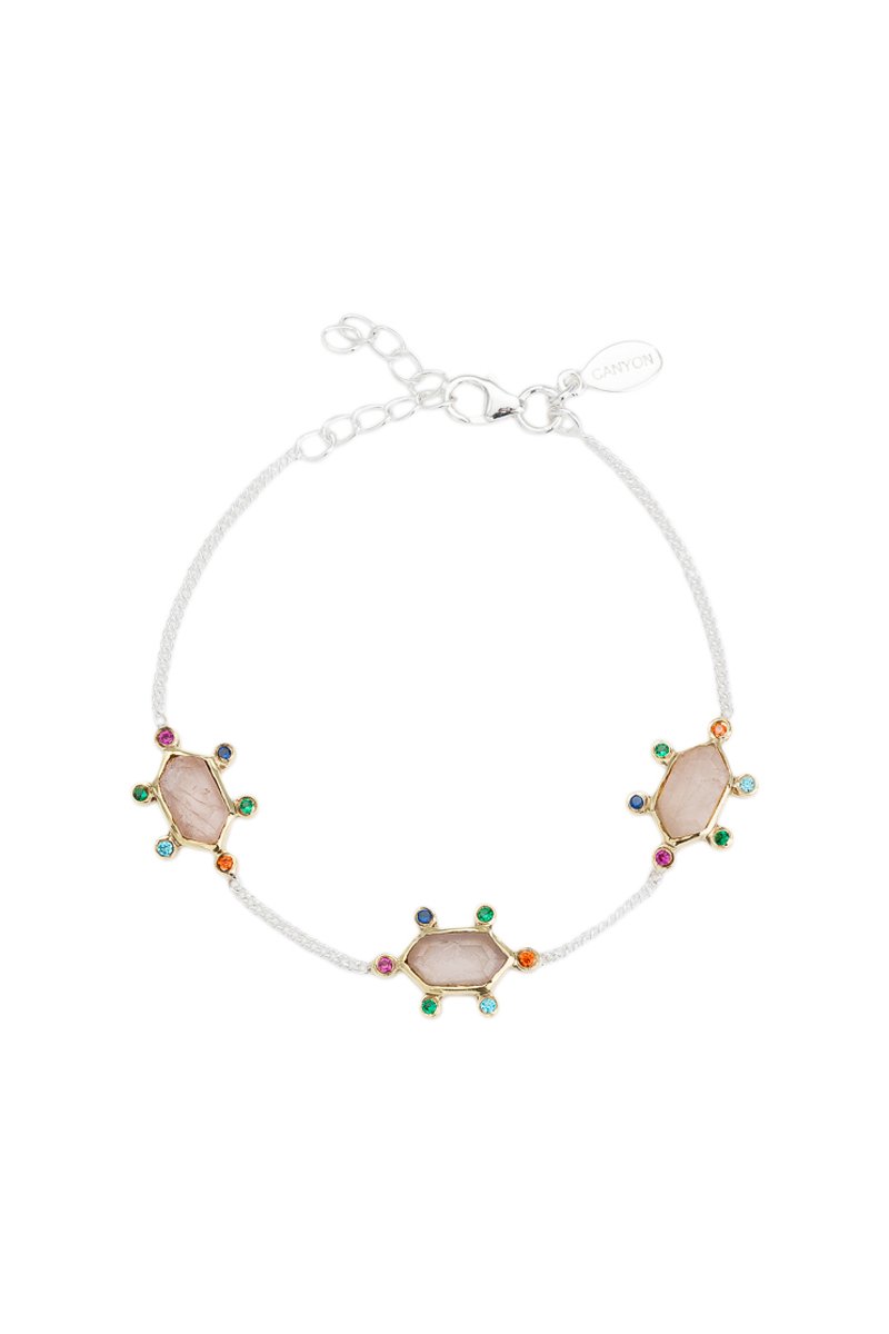 Bracelet en argent serti de 3 quartz et d’oxydes de zirconium.