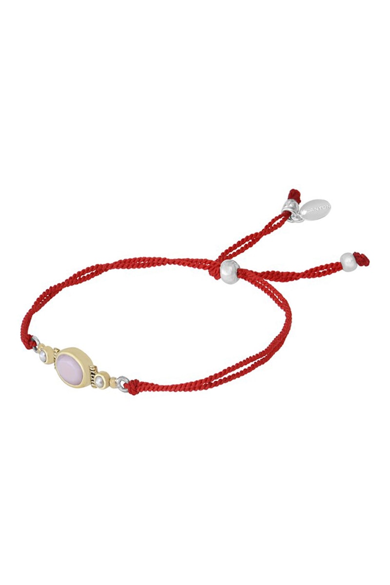 Bracelet ouvert en argent, laiton et coton serti de opale et de perles d'imitation.